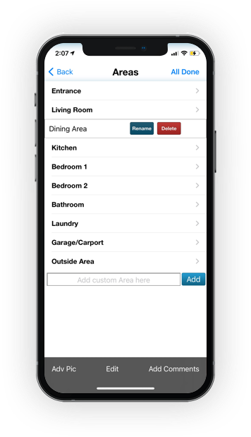 Easily add new property areas or rename existing areas during or after an inspection is complete.