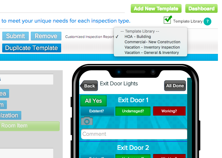 Change the buttons to whatever information is most important to you. Instead of “clean”, “undamaged”, and “working”, you can edit them to fit your inspection needs.